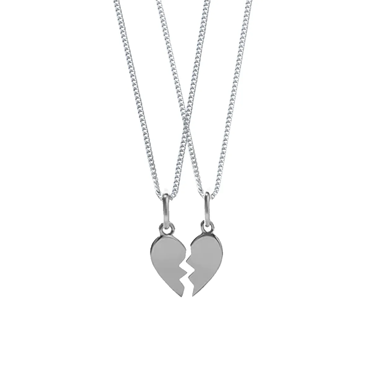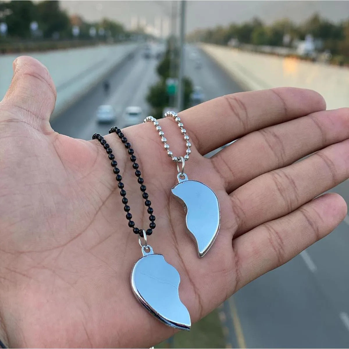 2 Pcs Set Heart Broken 2 Locket With 2 Chain - Couple Best Friend Ship