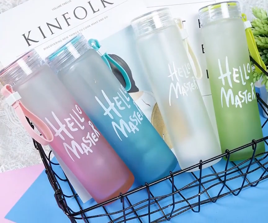 Product details of Hello master 400ml Colorful Glass Water Bottles For Girls Boys Leakproof Portable Water Bottle Frosted Drinking Bottle