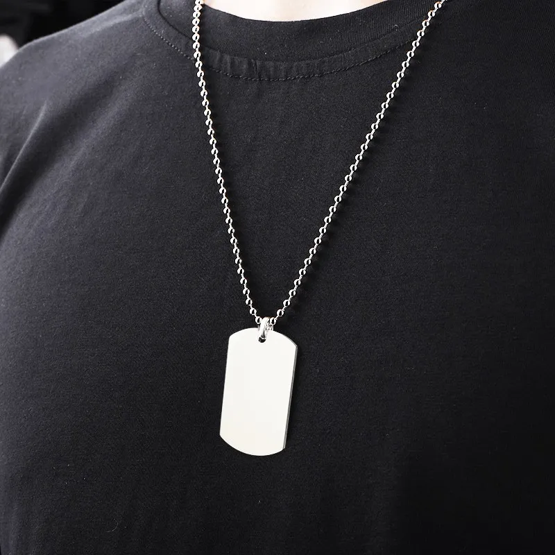 Plain Silver Stainless Steel Dog Tag Chain Pendant Necklace for Men